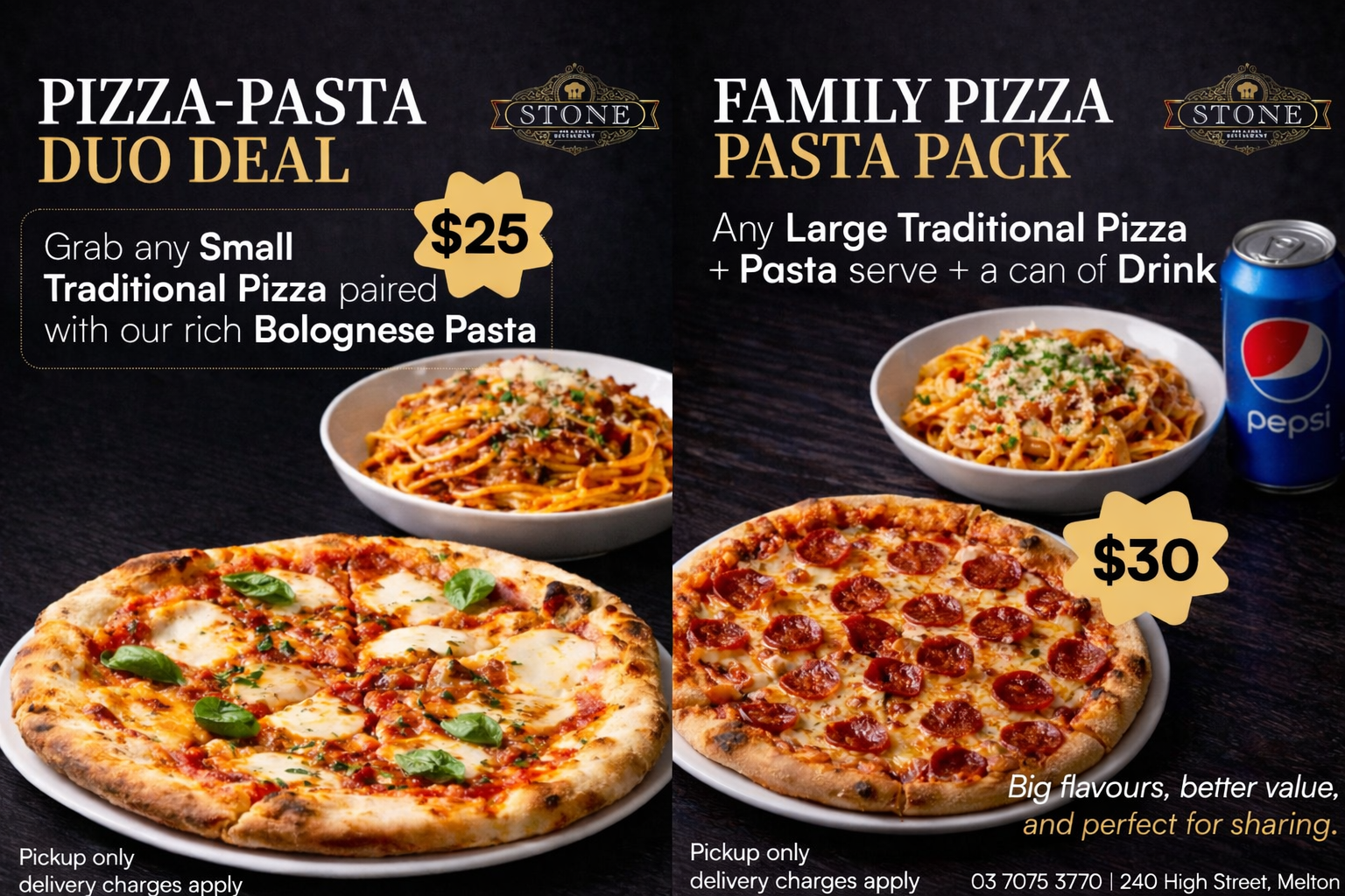 Any Large Pizza, Pasta & a Can of Drink